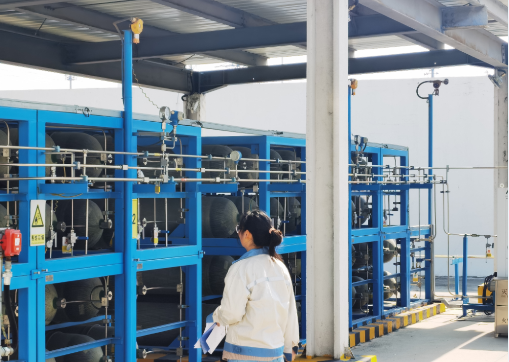蘇州常嘉氫能源科技有限公司成立于2019年5月13日,法定代表人應(yīng)春輝,位于常熟市東南街道常昆路361號,主要為氫燃料電池車提供加氫服務(wù)。 加氫站占地面積為5671m2。主要包括站房一座、儲氫區(qū)(氫氣長管拖車停車位、卸氣柱2個、儲氫瓶組2組)、氫氣壓縮區(qū)(氫氣壓縮機(jī)2套、配套冷水機(jī)組3臺)、加氫區(qū)(2臺35MPa加氫機(jī))。供氫能力為1000kg/d。 |